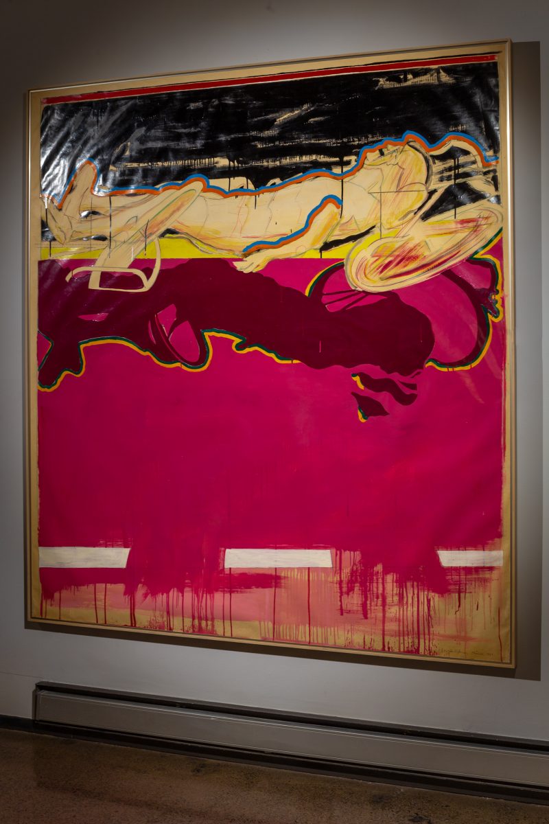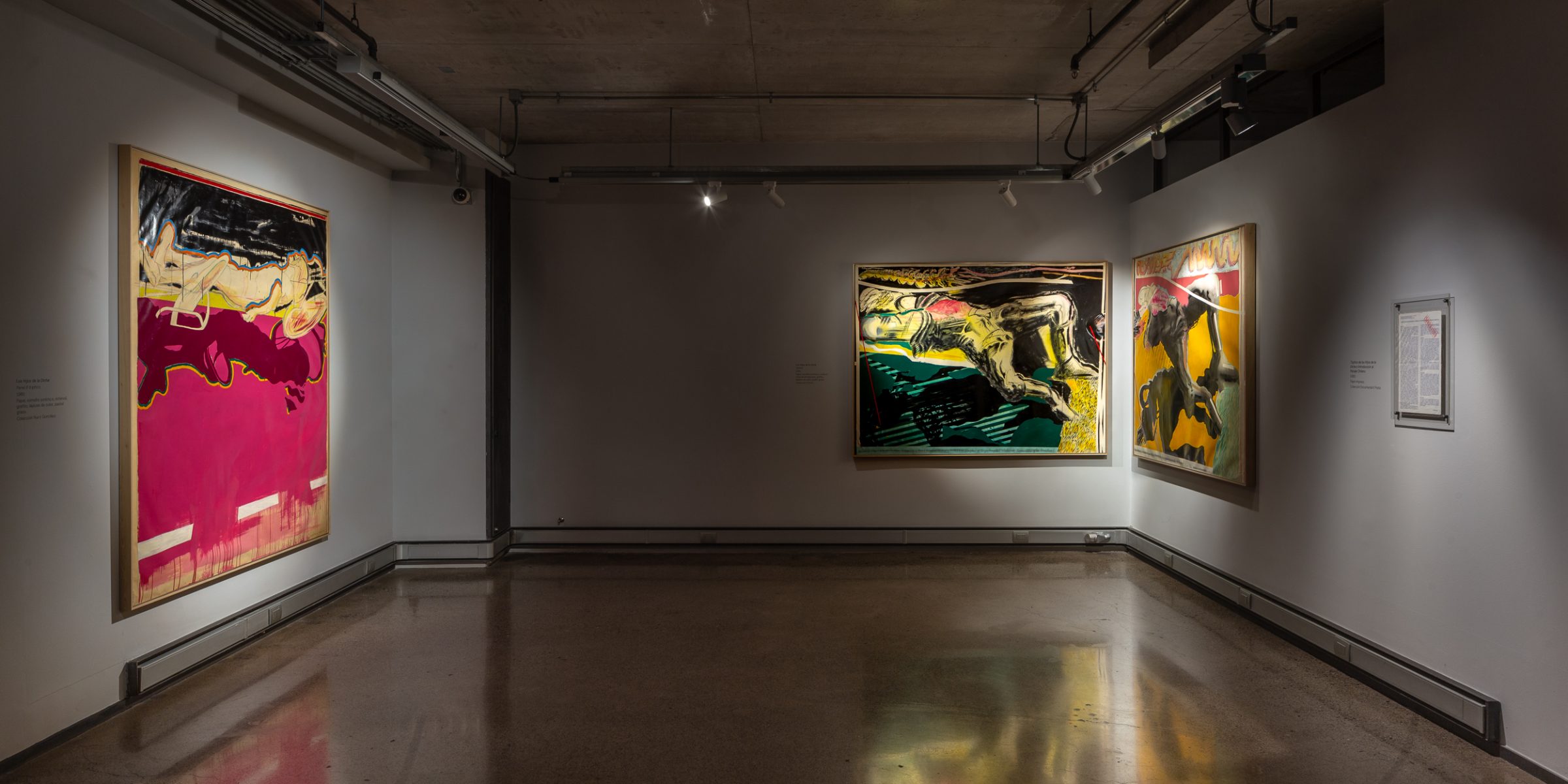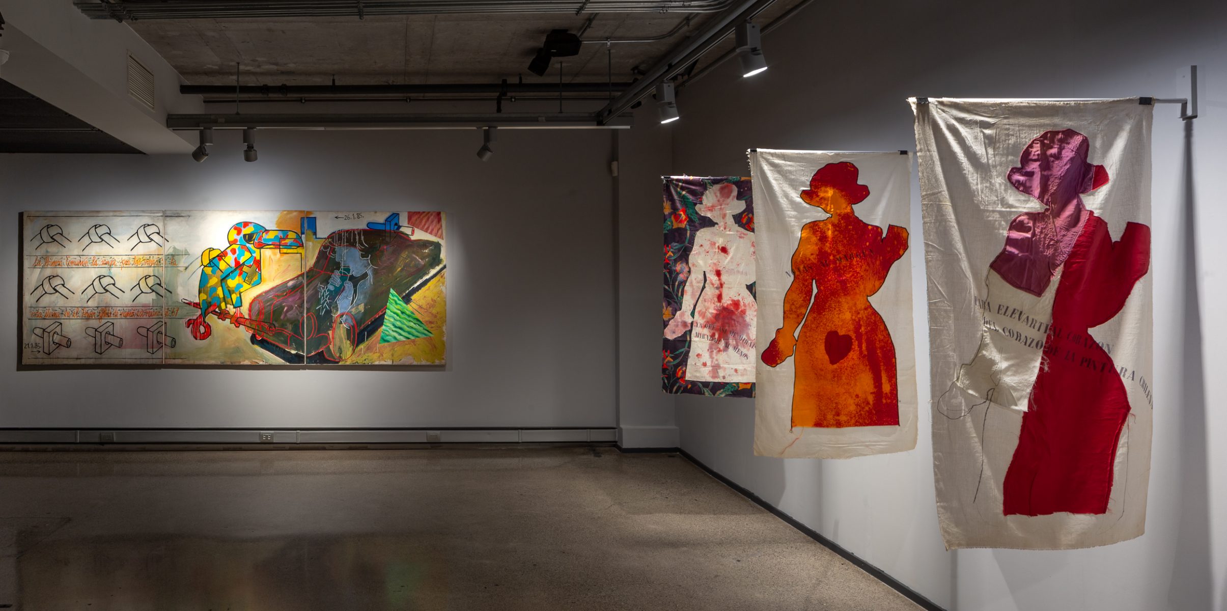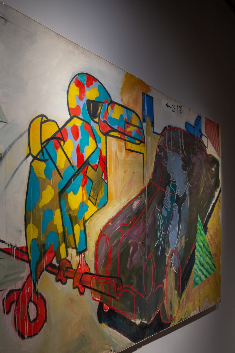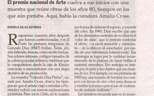 The exhibition Gonzalo Díaz, the painter brings together early works by the artist —including some created during his stay in Florence in the early 80s— that experiment with new pictorial languages and subject to criticism modes of visual representation through the reuse of symbols and elements of Chilean popular culture.