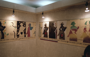 The introduction of a new way of thinking about the iconography of mass consumer products in Gonzalo Díaz’s work had its inaugural moment in the iconic exhibition “Historia sentimental de la pintura chilena” (A Sentimental History of Chilean Painting), which opened on July 17, 1982, at Galería Sur, shortly after the artist’s return to Santiago. In this exhibition, the illustration that forms part of the logo of the Chilean detergent brand Klenzo—a woman dressed in traditional Dutch costume and holding a box of the product in her right hand—was proposed as a Madonna of national painting and reproduced repeatedly along the entire length of a paper strip that hung at eye level ran along the perimeter of the gallery walls. At the foot of this visual narrative was a text that attempted an ode to this particular Chilean Madonna with a bonnet. It read: “In your outline of loss I set my eyes to raise you to the lyrical summit and the high thrones of history written by the painter. You are loss. I too could love you.”