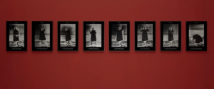 Faced with this, Paula Anguita brings an illuminating game to the museum. In her series Salomé I-VIII (2021), she works with a double surface: one visible and one invisible. The eight rectangular devices are displayed on the last wall of the Temporary museum, at average human height, and require viewers to approach them with their phone cameras. Only when the flash is activated does the invisible image become visible. And what we see in these dark mirrors is a dance: the step-by-step movements of a disheveled woman, rehearsing different poses in a petticoat, indoors. Paula Anguita’s Salomé exposes dance as a way of resisting the social order that needs to tame the unruly.