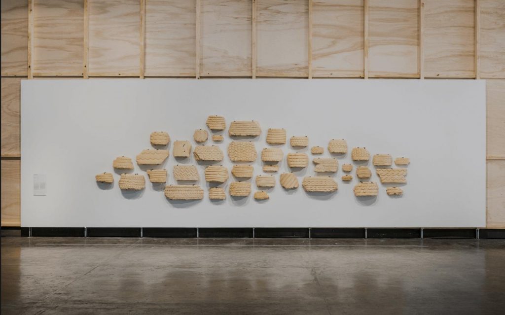 Both Margolles and Balseca’s works reveal an altered time in a sudden action. In the case of the Ecuadorian artist, his work is produced in the context of an invitation to participate in the 34th São Paulo Biennial, curated by Jacopo Crivelli Visconti and initially scheduled for 2020. Finally, the Biennial, Though it’s still dark, I sing, opens its doors a year later than expected due to the health emergency caused by the Covid-19 virus. This unexpected confinement cut short the artist’s original plans for the occasion, and made it impossible for him to produce his work in the territory and in contact with the communities he wished to work with: those living in sectors where natural rubber is exploited. BadYear (2020-2021) is, then, the result of years of personal research into the exploitation and manufacture of rubber. Through the exploration of graphic and scientific sources, Balseca compiles an archive of documents that give an account of the ecological and social implications caused by the exploitation of the polymer, as well as its impact on popular culture. For the Biennial, the artist created a large-scale installation composed of forty tyre fragments made of natural rubber. Together they evoke in the viewer a kind of ethnological fiction. Balseca himself comments that during the process of producing the work, in the midst of the sanitary quarantine, there was a general feeling of the end of civilisation. Somehow these earthy and imprecise pieces suggest the potential ruins of a modern society that is becoming extinct14Presentation by Adrián Balseca at Il Posto Research and Documentation Centre in 2023: https://www.youtube.com/watch?v=znbtg8idWeM, the eyes of a new civilisation that observes with attention these traces converted into friezes of an expired mobility, and the beginning of a new journey.
