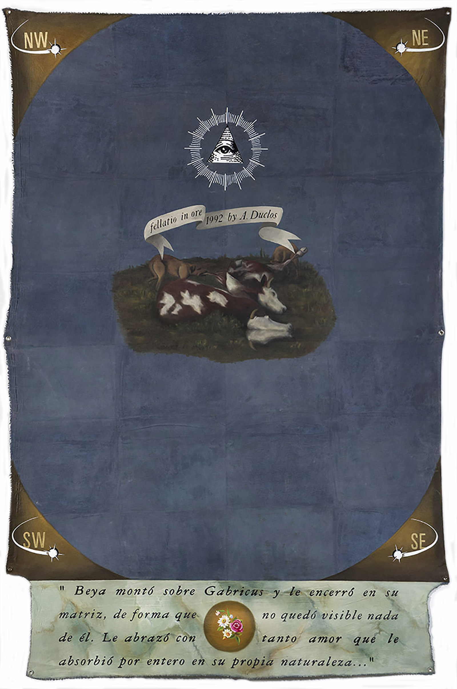 Duclos works with historical and popular iconographies, creating restless and innovative art pieces.
