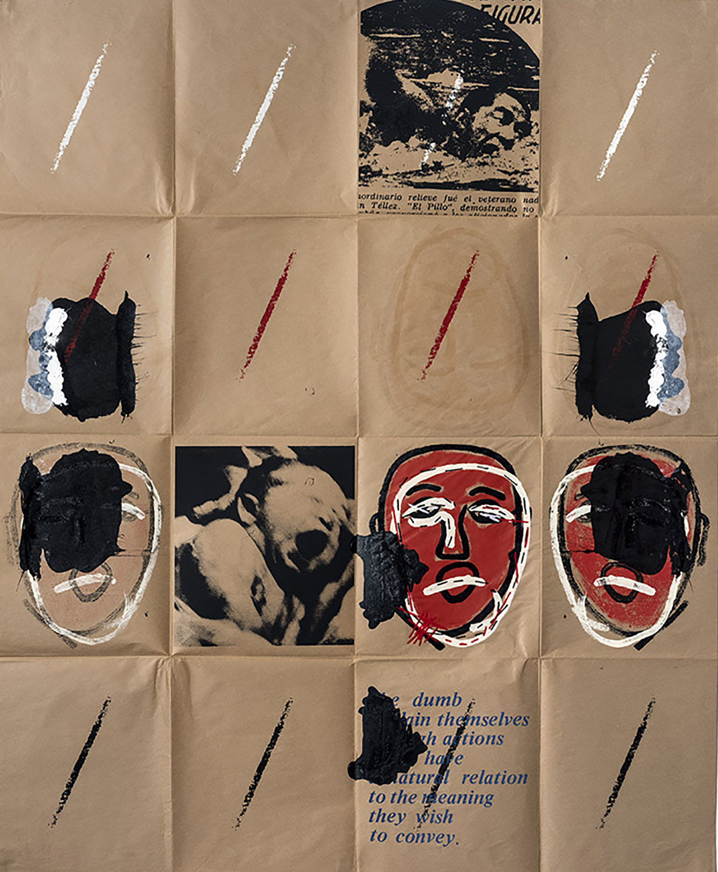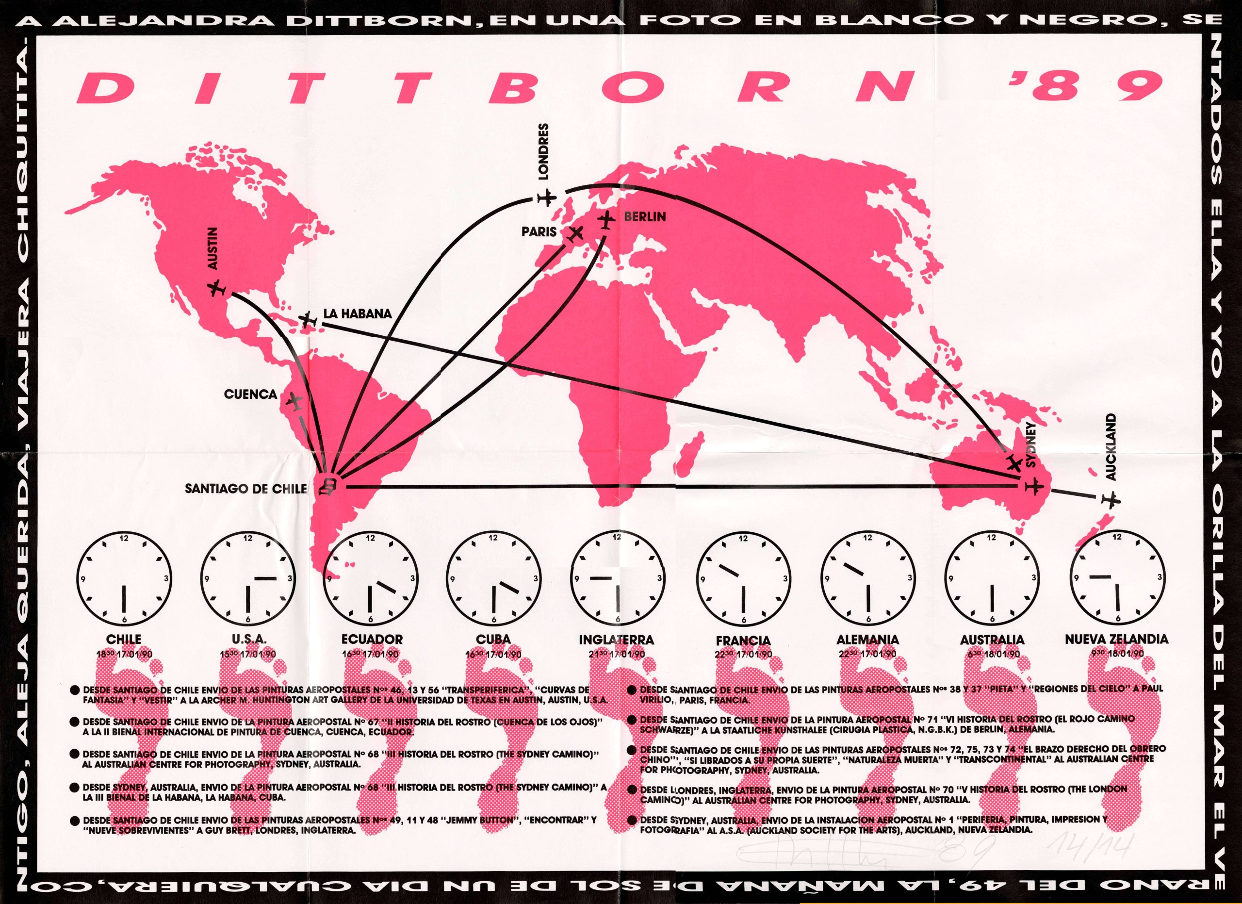 Dittborn created his own pictorial genre: the Airmail painting, works that achieve an elaborate aesthetic that appeal to time, to the interval expressed by the traces of the journey and in the folds of the support and to a subversion of the consumption system that makes art more expensive.