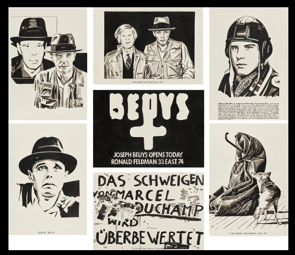 His ink on paper drawings systematically re-examine the ways historical events are represented in printed media. The process, which Bryce describes as “mimetic analysis” involves culling archives for print materials like advertisements, newspaper articles, and propaganda pamphlets in order to faithfully reproduce a selection of these materials, creating his own ink-on-paper “reconstructions.”