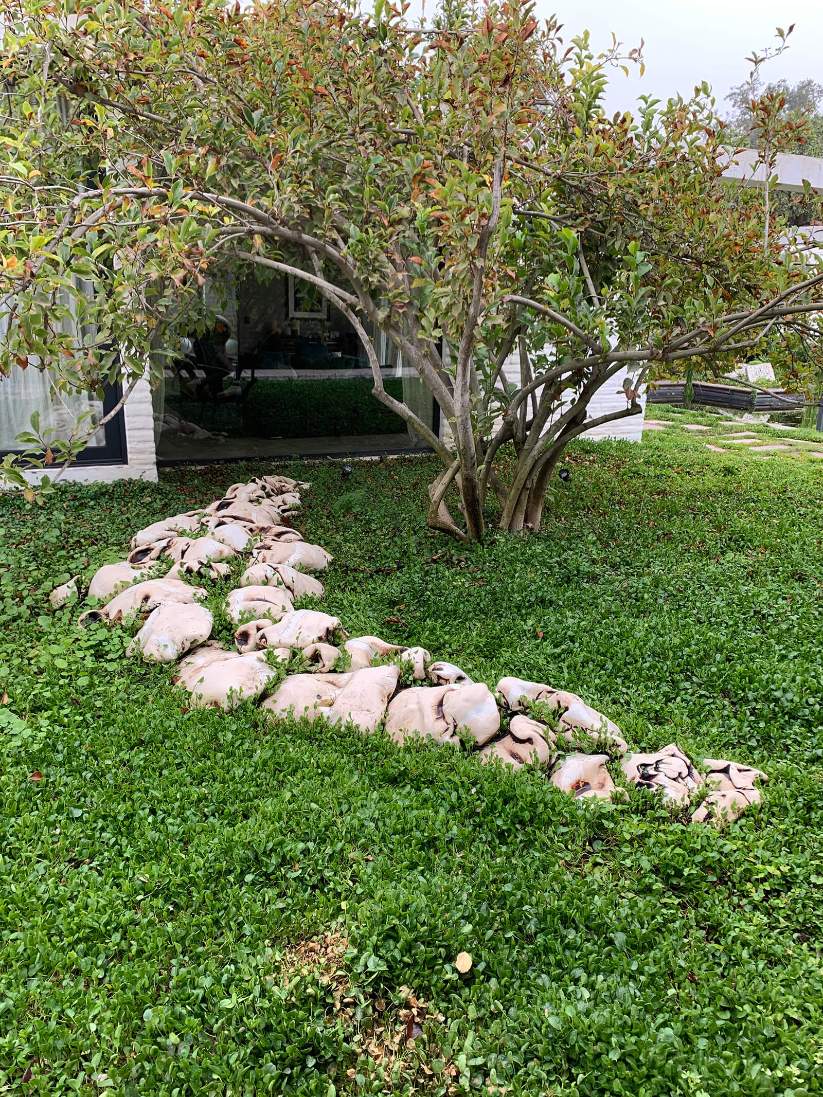 Casasempere’s ceramic forms are often inspired by the effects of machines and mass production on the environment and modern society. His exhibition at Roche Court in 2011, Bricks and Mortar, comprised a series of large works sited in the Walled Garden, laying on the grass and beneath trees, they appeared like discarded waste products from an unknown industrial process.