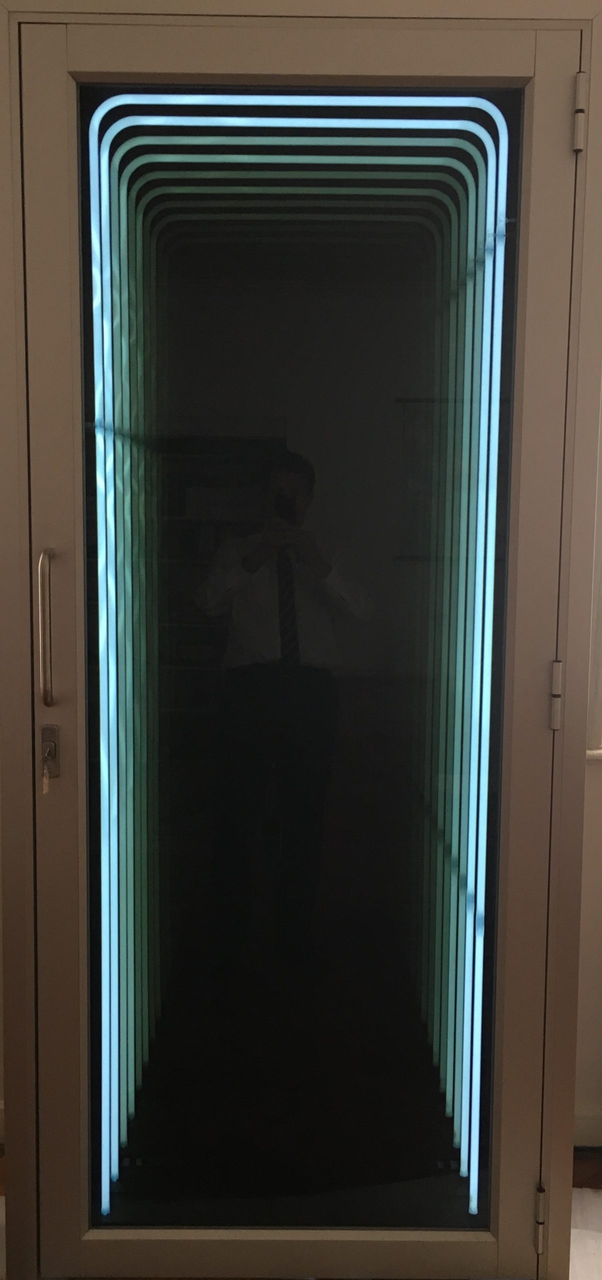 His uses light in his works to recreate physical objects, such as chairs and shopping carts that question power, death penalty and consumption of today’s society.