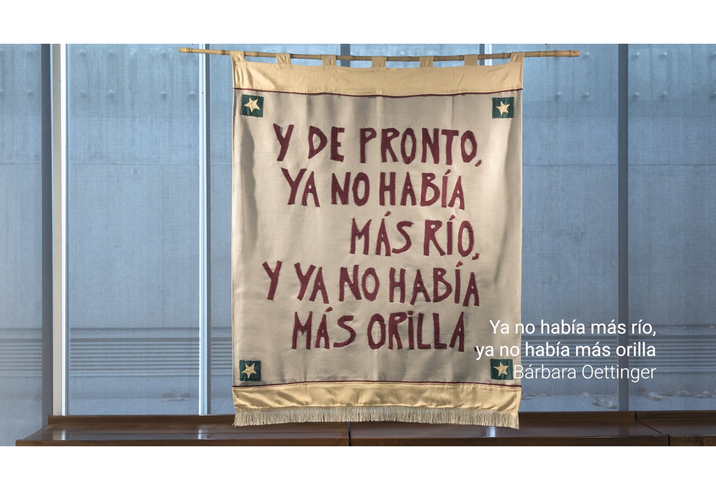 The first part of the exhibition «Y de pronto no había más orilla» addresses the concepts of liquidity, fluidity and the changing states of water as metaphors for non-normative forms of existence that urge us to put an end to an anthropocentric vision of the world. The pieces exhibited here remind us of the interdependence between humidity, life, saliva, river, plant, rain and what it implies to understand water not so much as an inert resource but as a living force that is also the only possibility for the future.