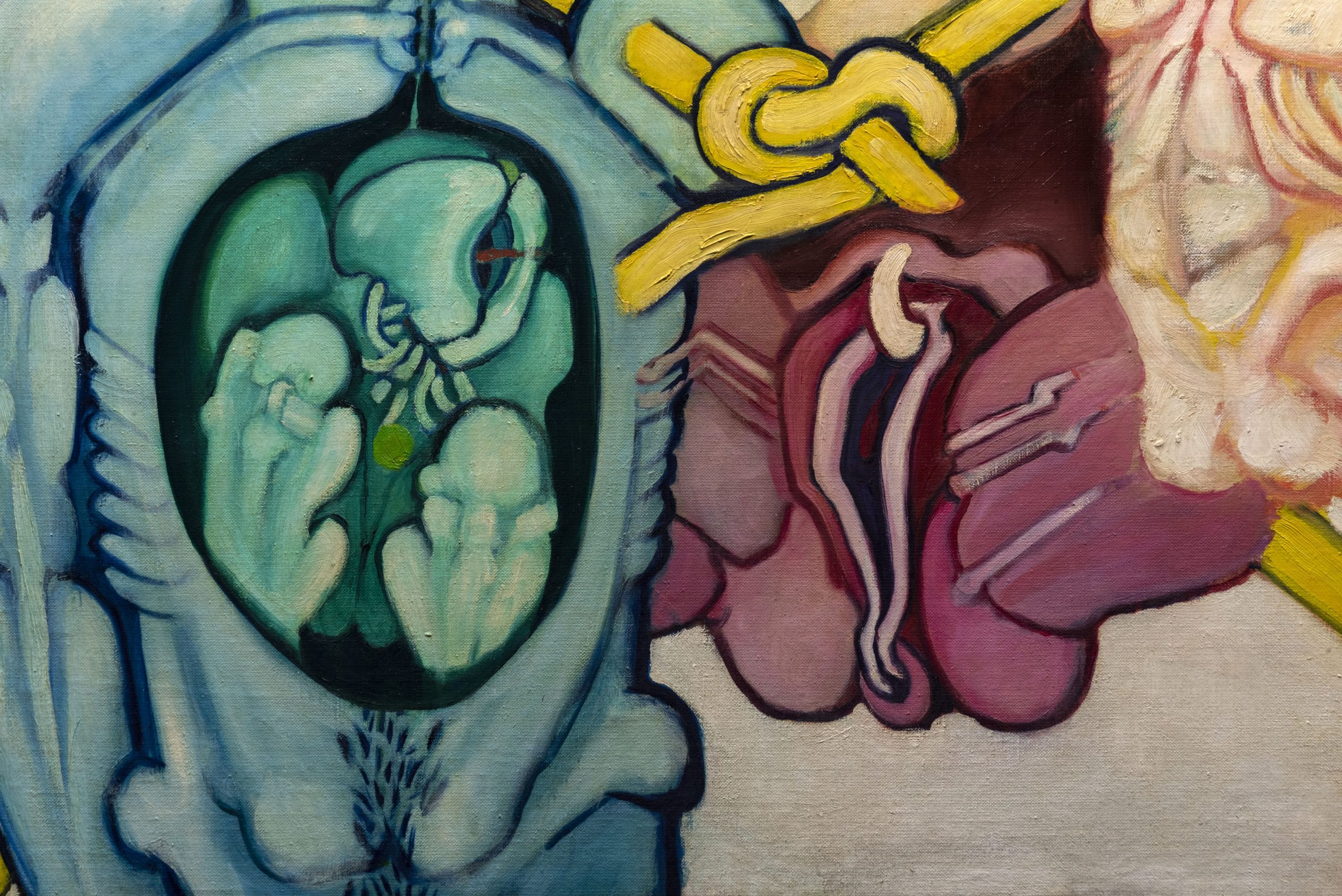 El nudo de la vida (“The knot of life”) proposes a visual and conceptual reflection on the early work of Chilean artist Juan Downey (1940 – 1993). The exhibition explores part of the pictorial and graphic work developed by the artist in the 1960s, while living in Barcelona, Madrid, Paris and New York. The title El nudo de la vida comes from the name of one of the pieces in the exhibition, Le noeud de vie (1965), and aims to poeticize the complex function of the systems between humans and machines, revealing symbolic and psychoanalytic perceptions, the condition of unity and tension, of life and death, of humanity and monstrosity, of desire and fear.