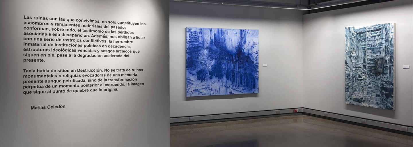 Tacla speaks of places in Destruction. These are not monumental ruins or relics evocative of a present but petrified memory, but the perpetual transformation of a moment after the din, the image that follows the breaking point that originates it.