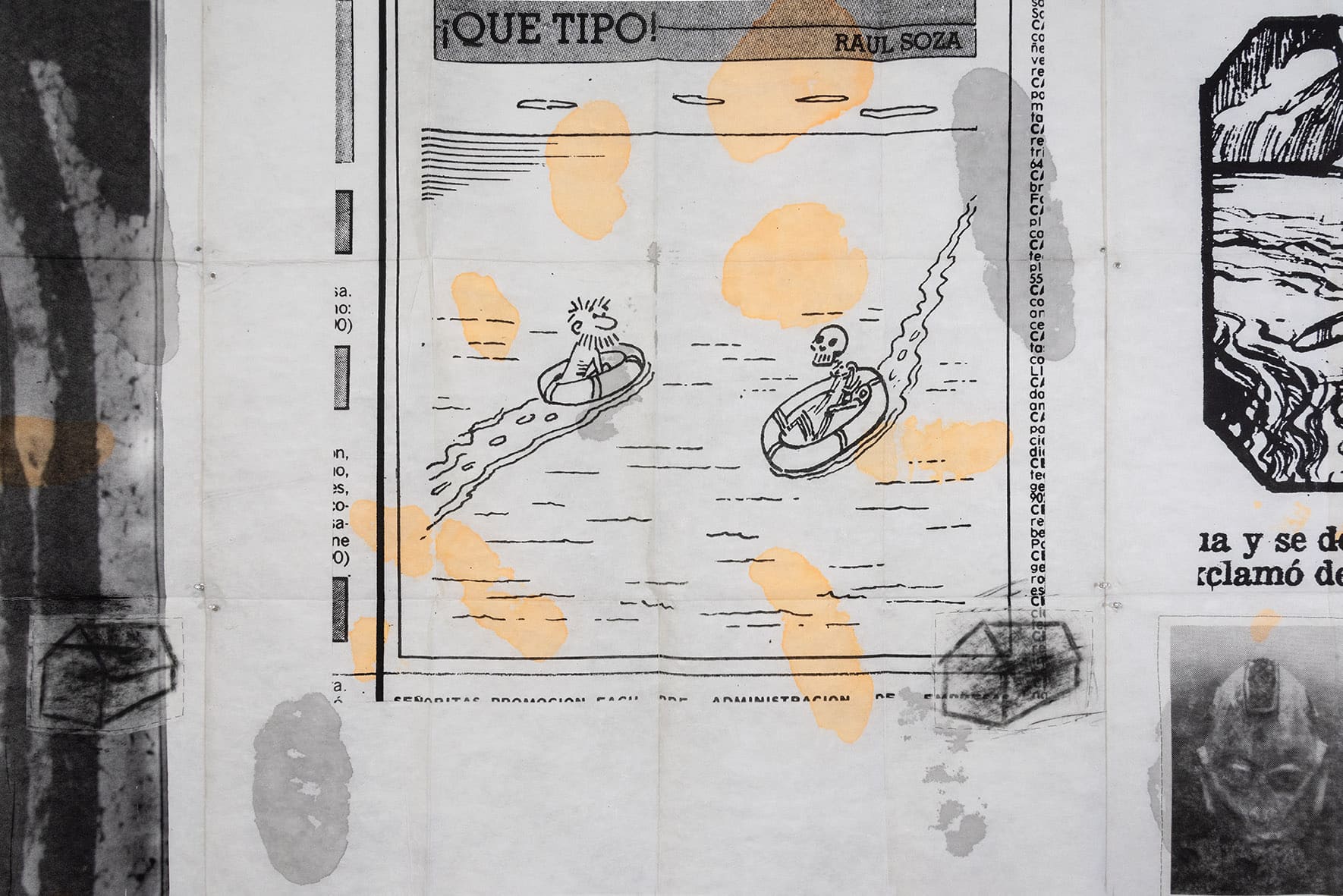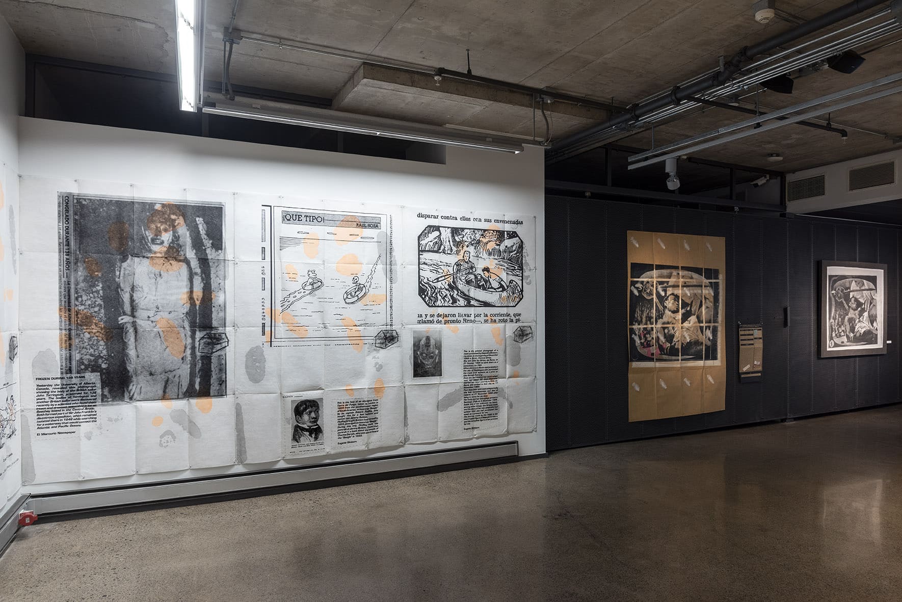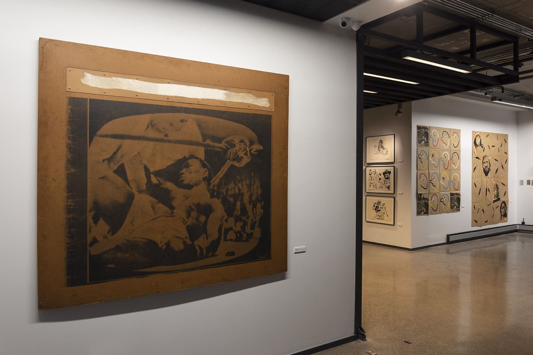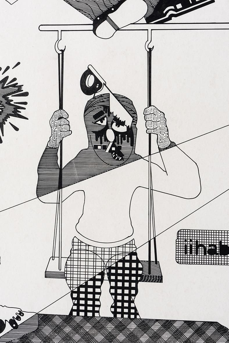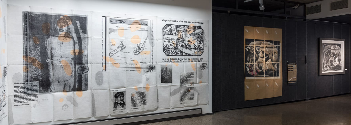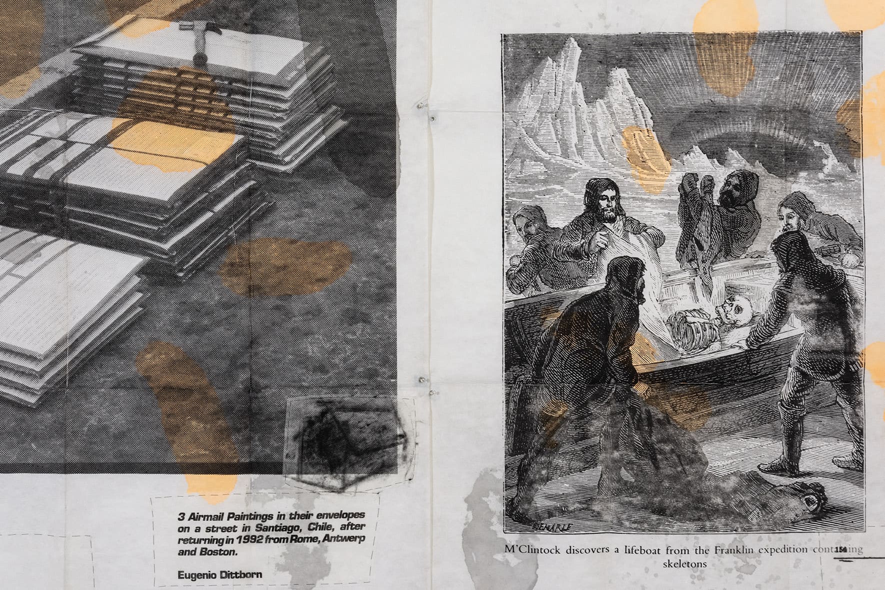 «Trabajos, 1969-2017» («Works, 1969-2017») is a singular exhibition of Eugenio Dittborn’s trajectory over the last fifty years. The works that coexist here -from the airmail paintings to the last drawings made by Dittborn before he «stopped working with his hand»-effectively capture the attitude of an artist that distrusts last words and all fixed states of affairs (including that of his own work). Little by little and at a rhythm of small discoveries, this constellation of images and visual practices allows us to see what Ana María Risco calls an authentic pictorial poetics. A poetics where things that seem absolutely indeterminate are, in reality, the result of a calculation, in the same way that things that seem absolutely calculated lead us incessantly to the indeterminate.”
