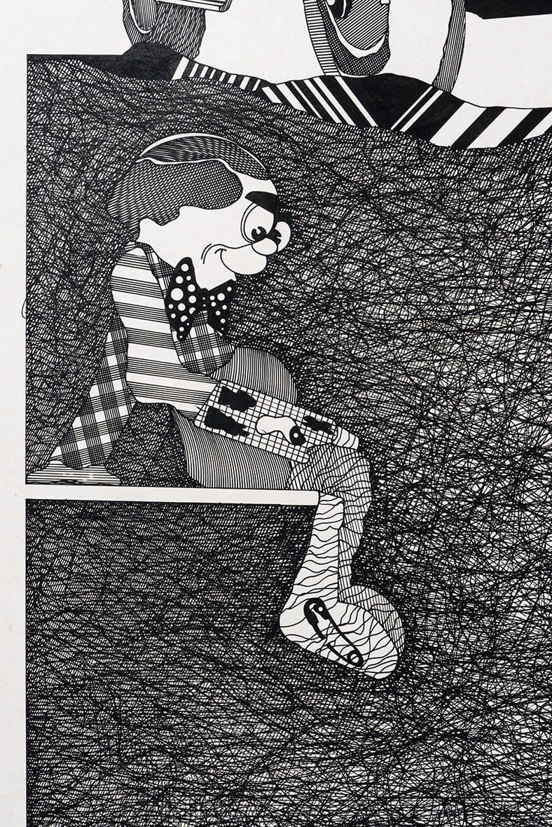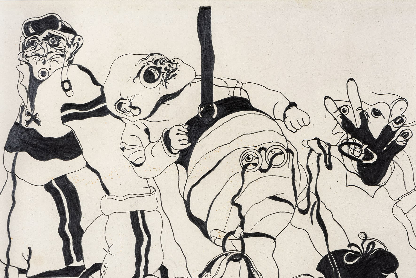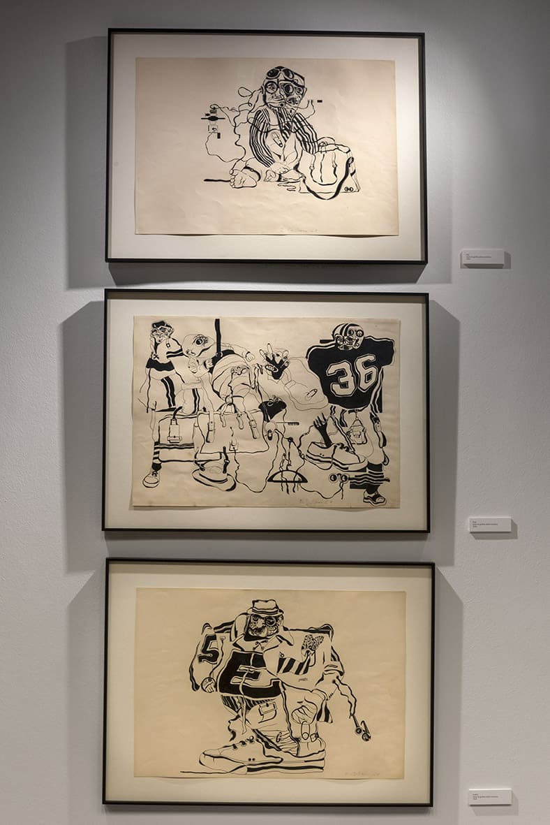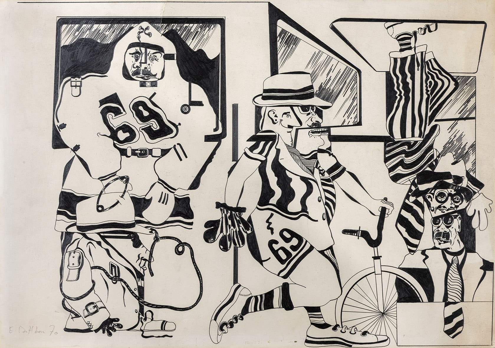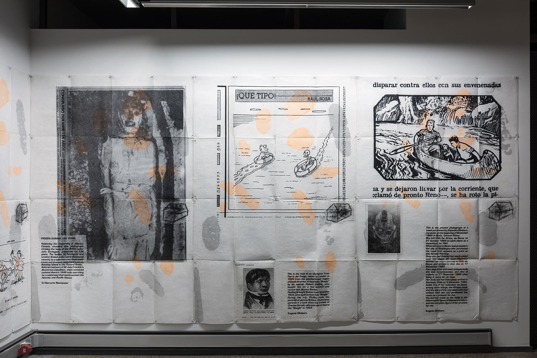 «Trabajos, 1969-2017» («Works, 1969-2017») is a singular exhibition of Eugenio Dittborn’s trajectory over the last fifty years. The works that coexist here -from the airmail paintings to the last drawings made by Dittborn before he «stopped working with his hand»-effectively capture the attitude of an artist that distrusts last words and all fixed states of affairs (including that of his own work). Little by little and at a rhythm of small discoveries, this constellation of images and visual practices allows us to see what Ana María Risco calls an authentic pictorial poetics. A poetics where things that seem absolutely indeterminate are, in reality, the result of a calculation, in the same way that things that seem absolutely calculated lead us incessantly to the indeterminate.”