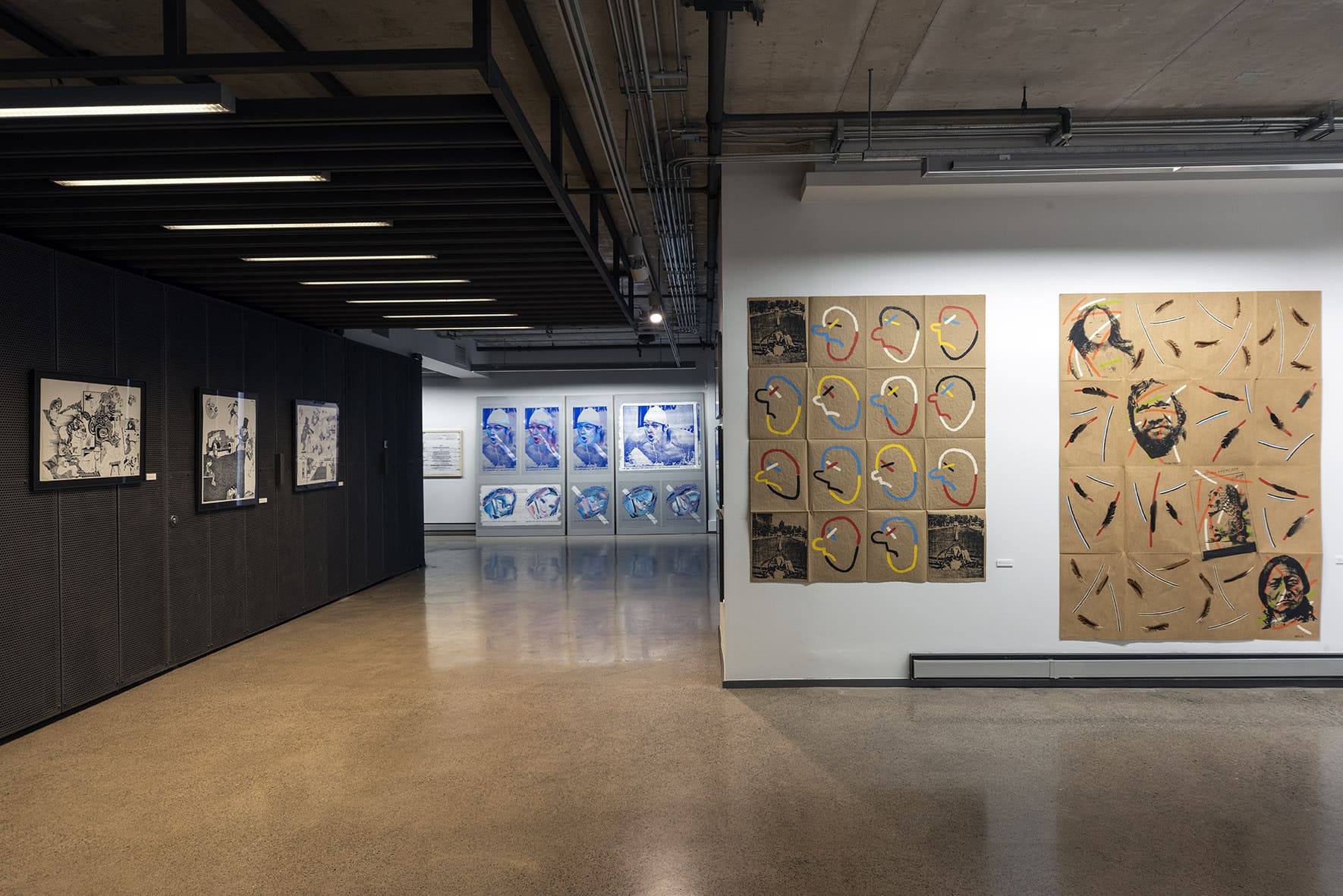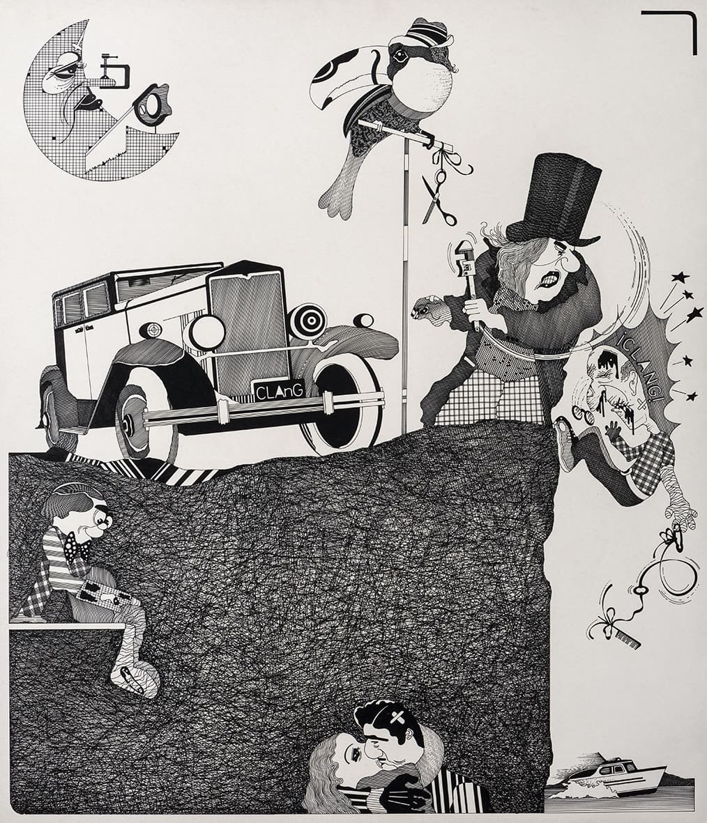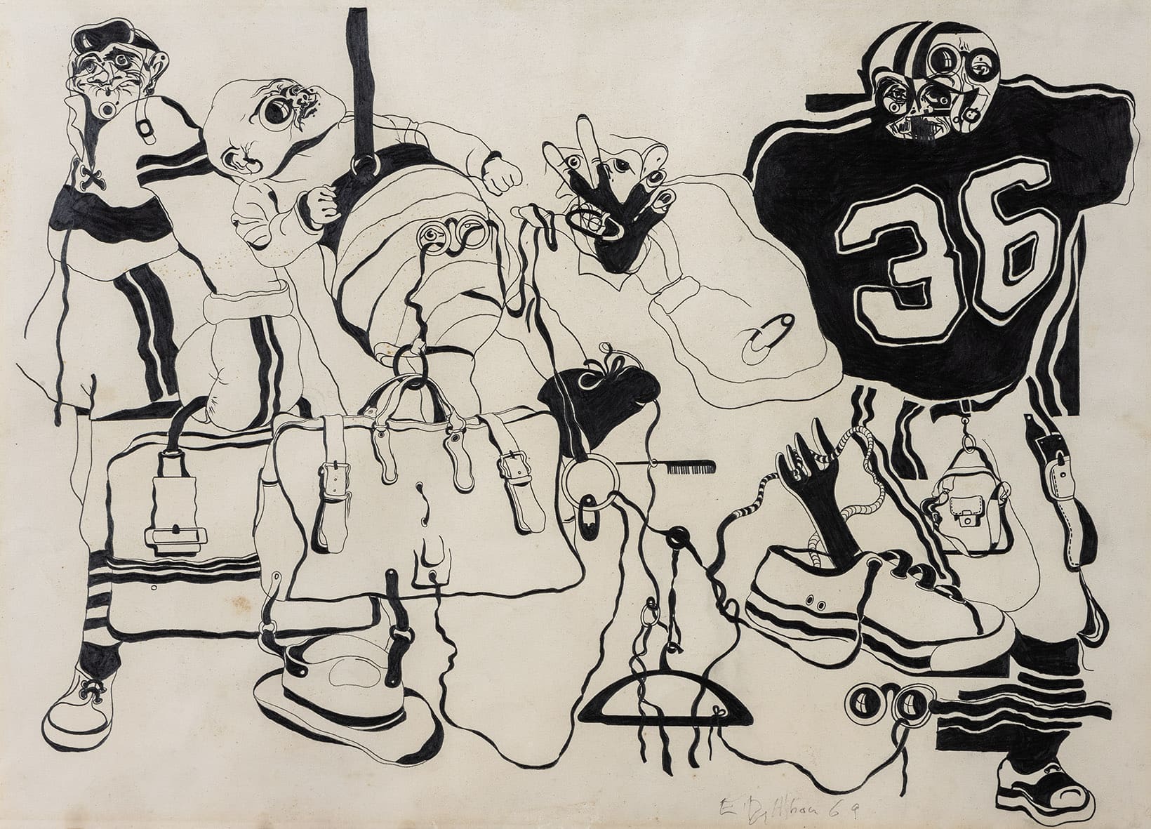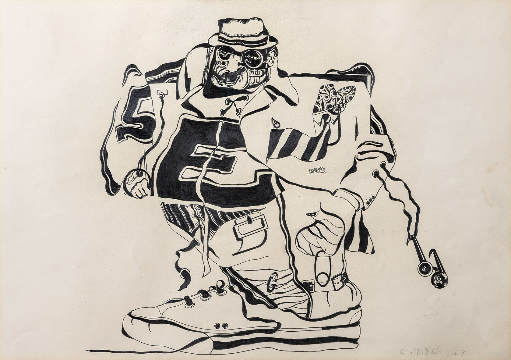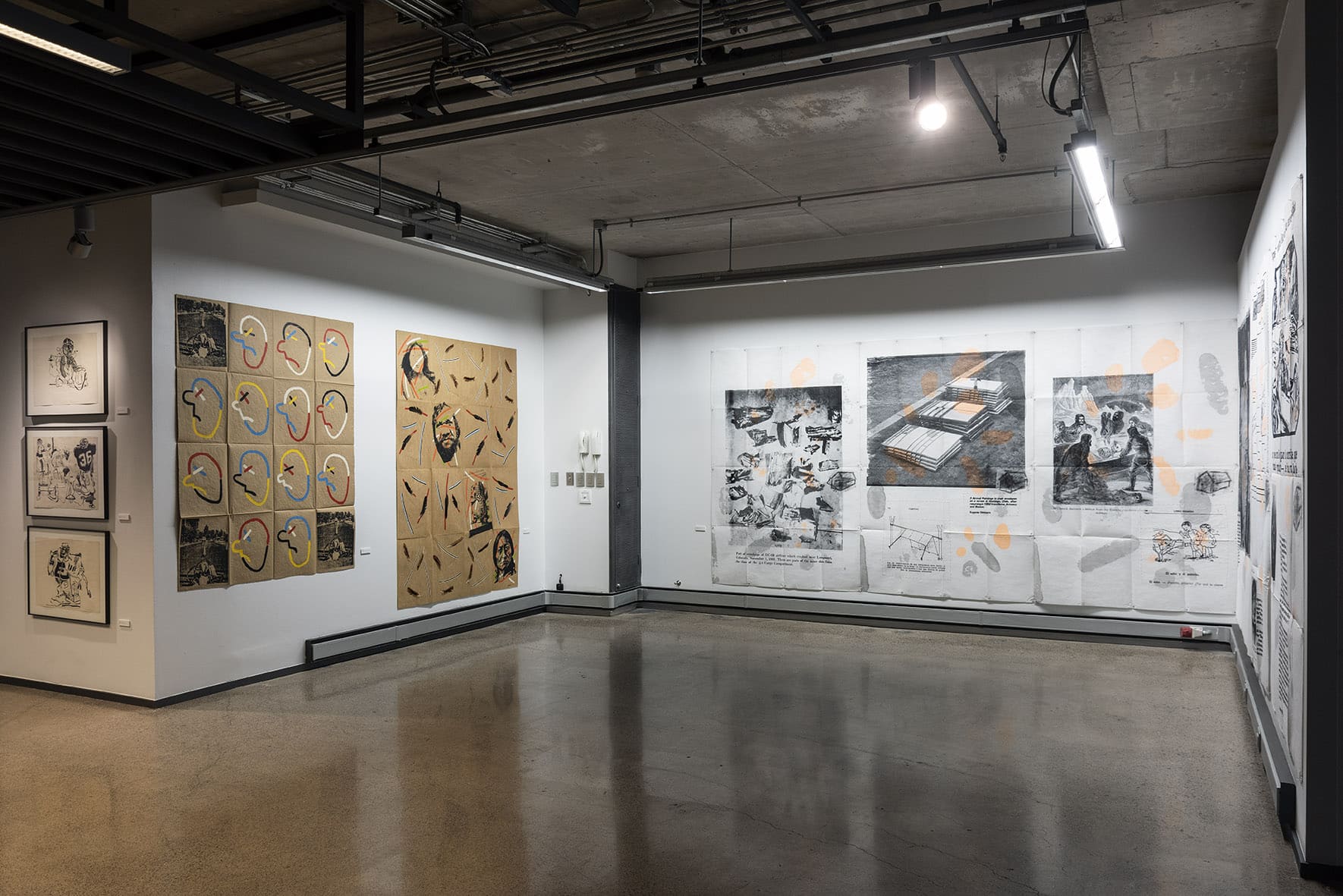 «Trabajos, 1969-2017» («Works, 1969-2017») is a singular exhibition of Eugenio Dittborn’s trajectory over the last fifty years. The works that coexist here -from the airmail paintings to the last drawings made by Dittborn before he «stopped working with his hand»-effectively capture the attitude of an artist that distrusts last words and all fixed states of affairs (including that of his own work). Little by little and at a rhythm of small discoveries, this constellation of images and visual practices allows us to see what Ana María Risco calls an authentic pictorial poetics. A poetics where things that seem absolutely indeterminate are, in reality, the result of a calculation, in the same way that things that seem absolutely calculated lead us incessantly to the indeterminate.”