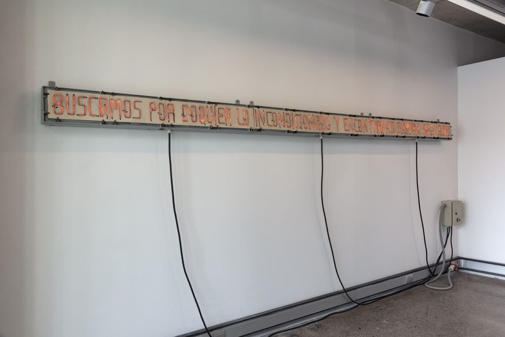 Buscamos por doquier lo incondicionado, y encontramos siempre sólo cosas. Esa es la frase de Novalis que recupera Gonzalo Díaz en la instalación “Al Calor del pensamiento.” Según Sergio Rojas, no podemos dejar de percibir aquí una nota de la especial y poderosa experiencia de la finitud que sería propia del romanticismo (“la demanda de lo incondicionado”, nos recuerda el autor, “es la manera en que lo humano experimenta la caducidad de la existencia”). Sin embargo, la patética de lo material y de la finitud que exige las mayores sublimaciones aparece en la obra de Díaz en un sentido inverso, como si se tratase de exhibir la insuficiencia del sujeto con respecto a la materia o a la densidad inalcanzable de las cosas.