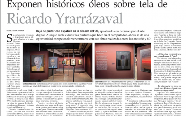 La muestra «Ricardo Yrarrázaval: tres décadas» reúne obras del artista chileno Ricardo Yrarrázaval realizadas entre los años 1964 y 1986, provenientes de diversas colecciones privadas y de la Colección Il Posto, ofreciendo un recorrido por casi treinta años de producción del artista.