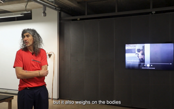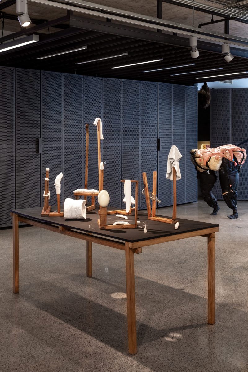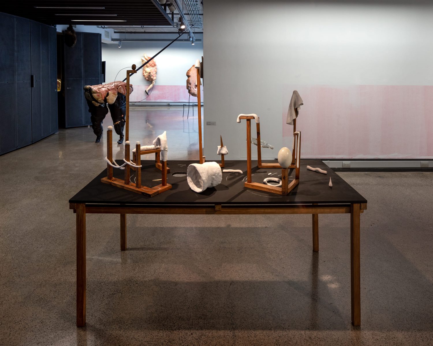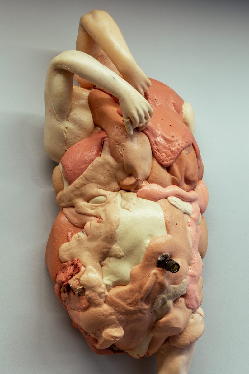 Bianchi, arquitecto de fluidos, urbanista cool, parásito ingenuo y recolector porteño, o todo al mismo tiempo, construye pensando dónde están los lugares y los cuerpos que no existen. De las extremidades que cuelgan y atraviesan sus figuras emana una energía capaz de constatar la lucha incesante que libramos contra la imposibilidad y el futuro. Esta negatividad, benigna y afectiva, se alimenta de las nuevas y persistentes clases de asociaciones que subvierten las relaciones entre el cuerpo y los dispositivos. Y estas correspondencias nos permiten imaginar nuevas políticas de lo inanimado, y pensar sobre el lugar que ocupa la contradicción y la confusión en la construcción de nuestras aspiraciones y deseos.