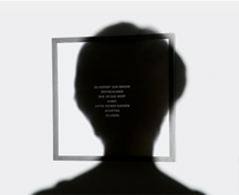 Figuras insinuantes aparecen y desaparecen a medida que se recorre el San Jorge y el Dragón de Díaz, como Eurídices que se esfuman al voltear. Una mujer se vislumbra montando abrazada al caballo, pero al correr la vista se funde con la crin y la sombra del costado del equino. La franja de tierra frente al animal se arquea en forma de garra y detrás, en un efecto de pareidolia, una mano hecha de bloques de roca apunta hacia el cielo25En Díaz, la piedra que apunta al cielo, arrastra su peso inerte señalizando su proveniencia celestial, como el El Paseante (2009) que acabara perdida en lugares remotos según el citado relato de Goethe, O Civitas Dei de Notizen, en donde el artista signa los nombres como ángeles sobre estos anómalos lastres. Sumándose estos antecedentes al dedo del Platón de Rafael que apunta al cielo en su Escuela de Atenas.. Sobre la jinete, se distingue una tercera flecha, una torre lejana que se inclina en su dirección, tentada a desplomarse. Y más acá, la sombra de un busto humano se camufla en forma de arbustos tupidos (fig. 33). ¿No es, acaso, aquel que vino a leer la palabra arte bajo su propia sombra, como reza la obra Eclipse26Obra presentada en la Documenta 12 en Kassel, Alemania. “En el primer momento sólo se ve en el recinto oscuro la luz de un reflector, cuando uno se acerca a la marca en la pared aparece en la propia sombra el texto en alemán DU KOMMST SUM HERZEN DEUTSCHLANDS NUR UM DAS WORT KUNST UNTER DEINEM EIGENEN SCHATTEN ZU LESEN (Has llegado hasta el corazón de Alemania solo para leer la palabra arte bajo tu propia sombra)”. Archivo Gonzalo Díaz. de Gonzalo Díaz (fig. 34)?