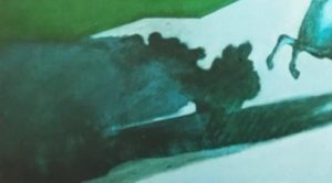 Fig. 19. Luz viridio y carmín en reencuadre de Pintura por Encargo, Gonzalo Díaz (1985)