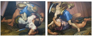 Figs. 45 y 46. David y Goliat de Daniele da Volterra (1555), anverso y reverso del cuadro.